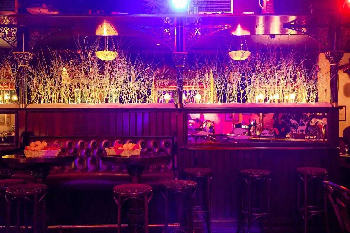 · «Звездный зал» — украшение вдохновлено бесконечностью Космоса. Его стоит выбрать тем, кто хочет больше музыки. Идеально и для праздника большой компании, и для уединения в уютной кабинке с самыми близкими.
